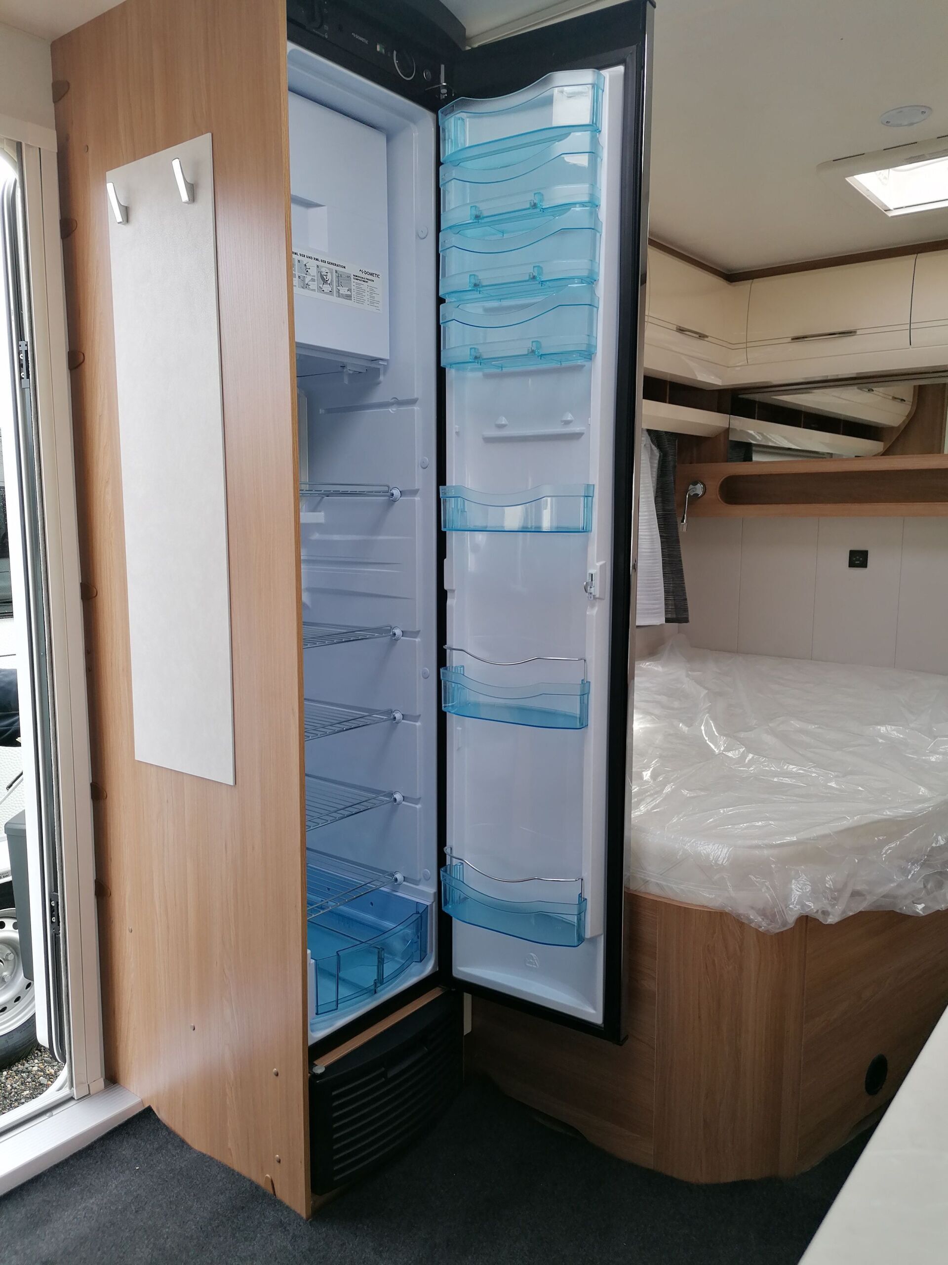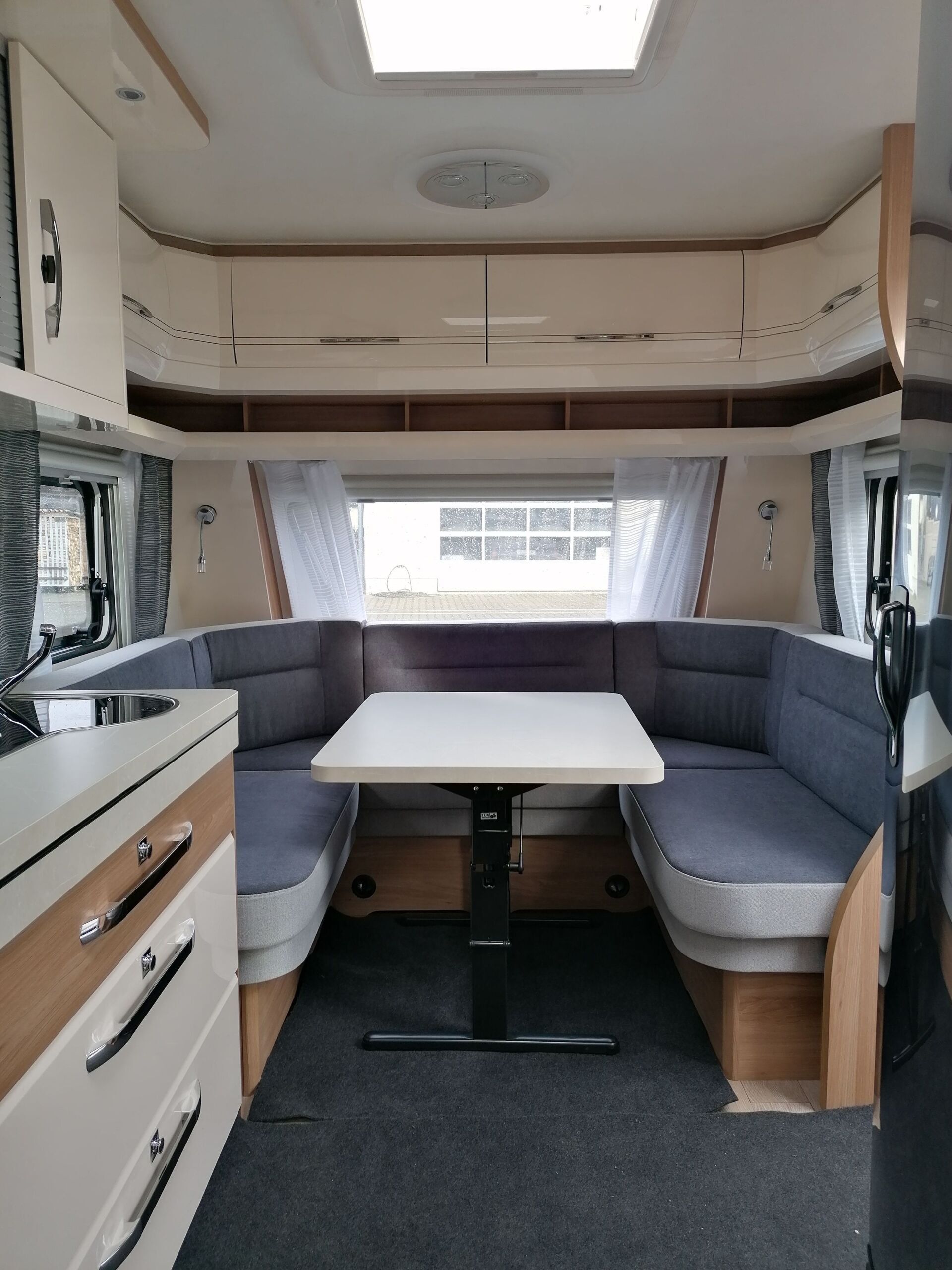 Extrabreite Eingangstür, einteilig, mit Dreifachverriegelung, Fenster, Abfalleimer, Staufächern und Insektenschutzplissee im Türrahmen | Deichselabdeckung | KNOTT ANS-Aaufbremse mit automatischer Nachstellung | Dachhauben mit Verdunkelungs- und Insektenschutzplissee | Kombikassetten an Fenstern mit Verdunkelungs- und Insektenschutzrollo | Küchenfensterrollo mit integrierten Steckdosen | Extra großer Kühlschrank mit bis zu 150-Liter Volumen | Komfortable Federkernmatratzen | HOBBY CONNECT, Steuerung für Bordtechnik über Hobby-Bedienpanel und Bluetooth per App | Ambientebeleuchtung | Mindestens fünf Steckdosen ... und vieles mehr